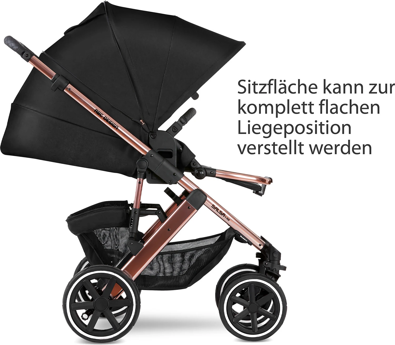 Durch das Kugellager ist der „Salsa 4 Air“ leicht und extrem wendig. Zusätzlichen Komfort schenkt die integrierte Radfederung, die eine individuelle Anpassung an Gelände und Untergrund ermöglicht. Neugeborene finden im Kinderwagenaufsatz, ausgestattet mit einer atmungsaktiven und kuscheligen Bodeneinlage, Geborgenheit. Der Aufsatz kann mit wenigen Handgriffen am leichten Aluminiumgestell des „Salsa 4 Air“ fixiert werden.