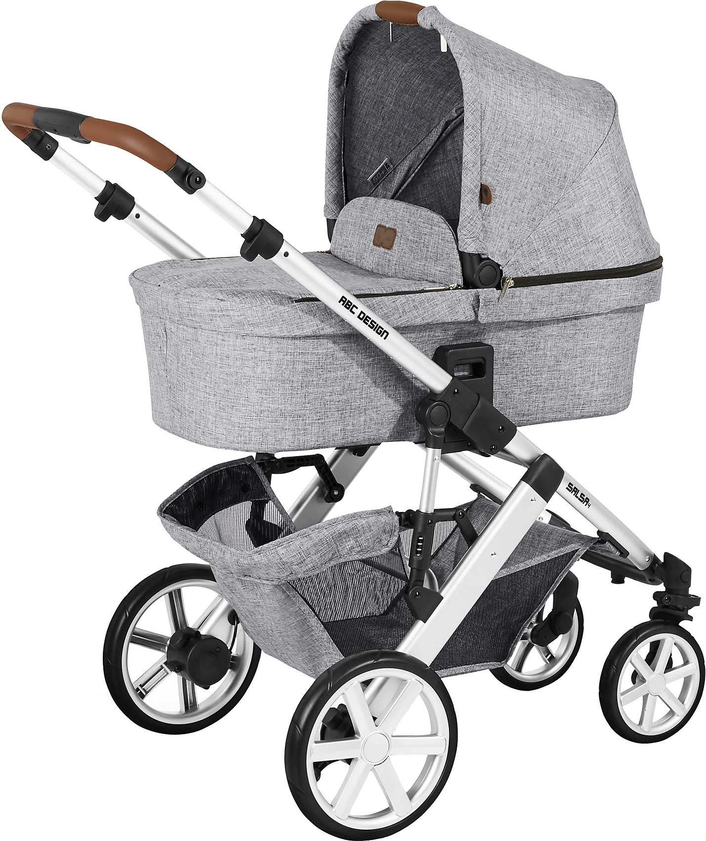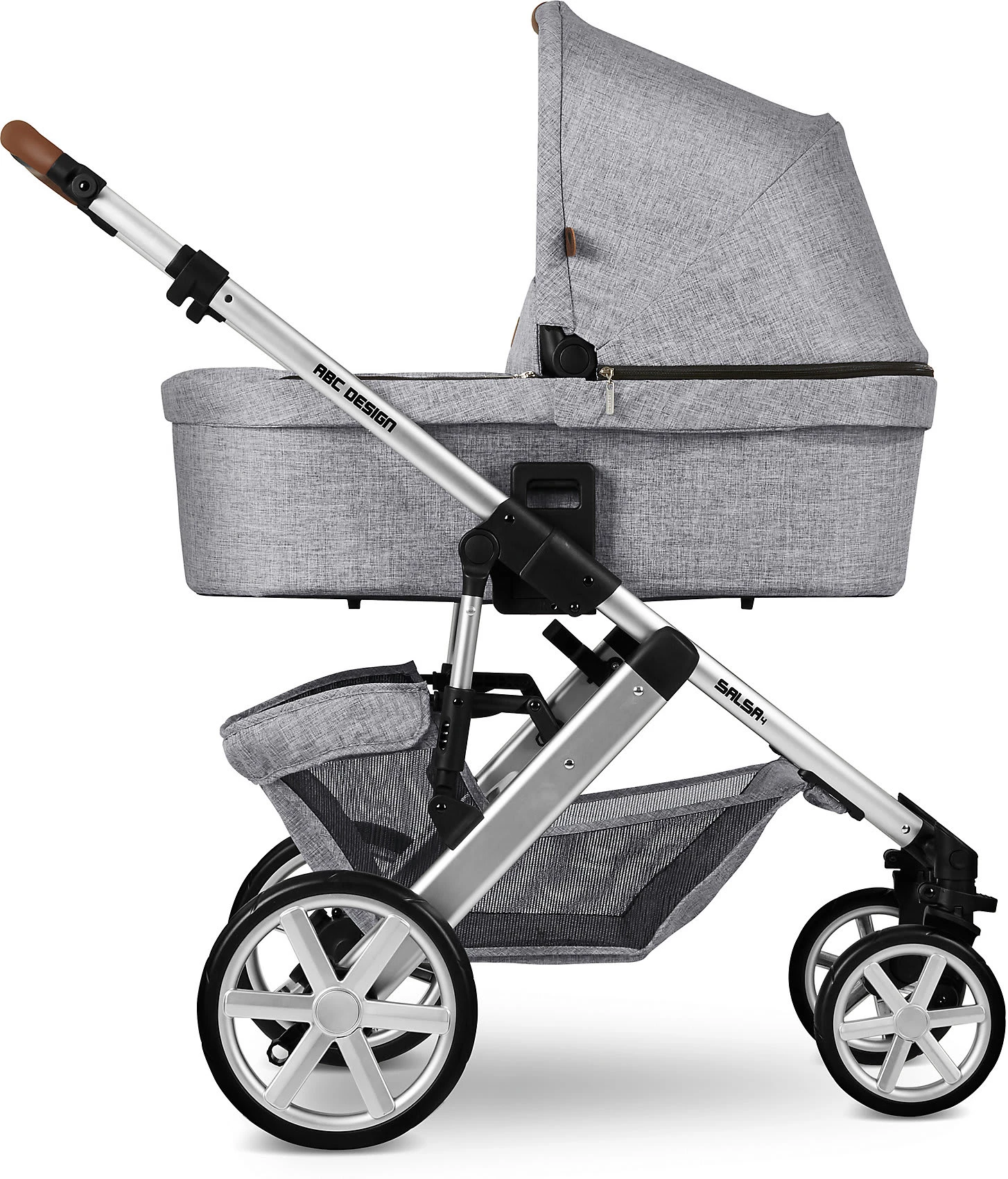 Der Kombikinderwagen „Salsa 4“ von ABC DESIGN überzeugt mit seiner modernen Optik. Durch das Kugellager ist der Salsa 4 leicht und extrem wendig. Zusätzlichen Komfort schenkt die integrierte Radfederung, die eine individuelle Anpassung an Gelände und Untergrund ermöglicht. Neugeborene finden in der Tragewanne, ausgestattet mit einer atmungsaktiven und kuscheligen Bodeneinlage, Geborgenheit. Die Tragewanne kann mit wenigen Handgriffen am leichten Aluminiumgestell des Salsa 4 fixiert werden.