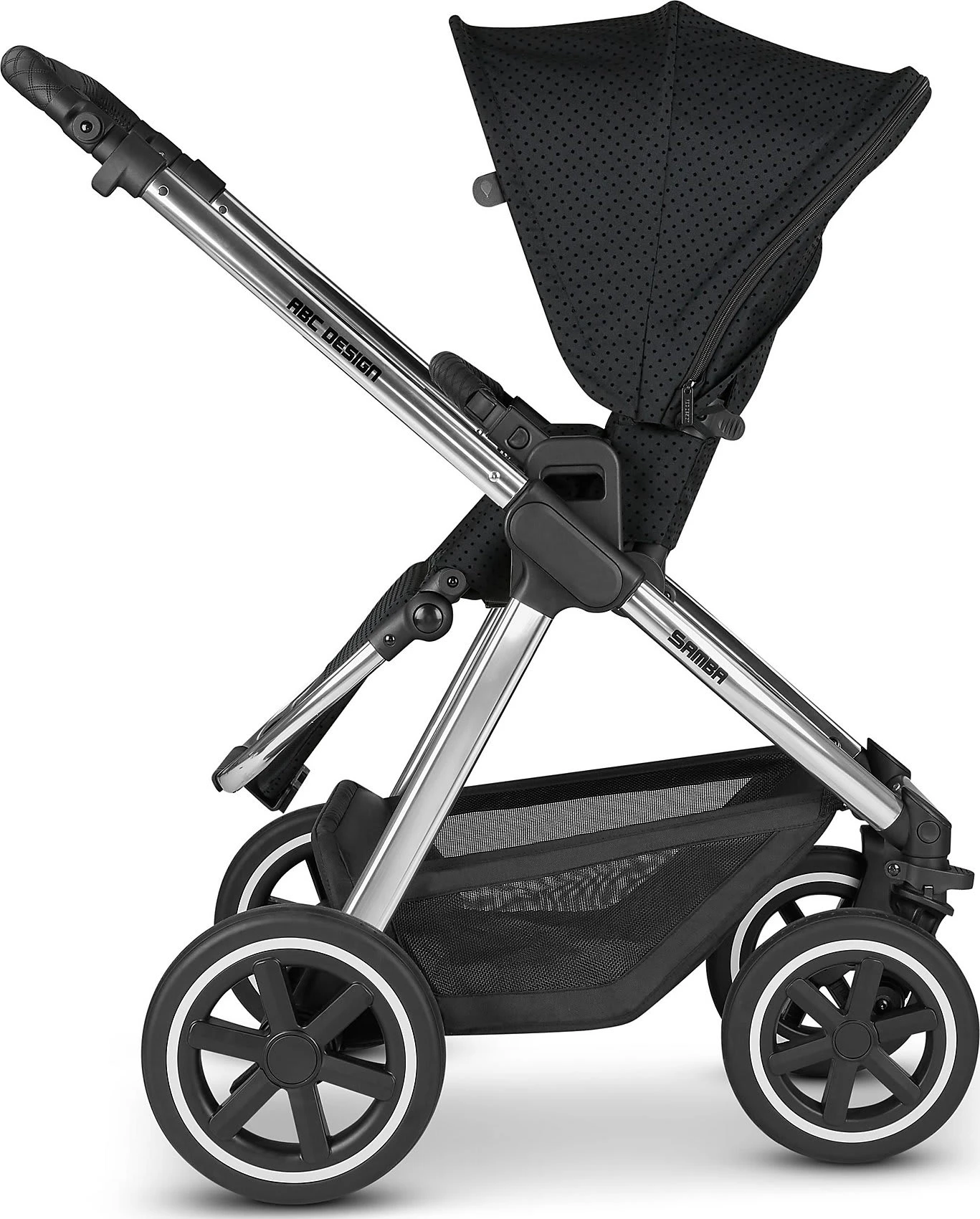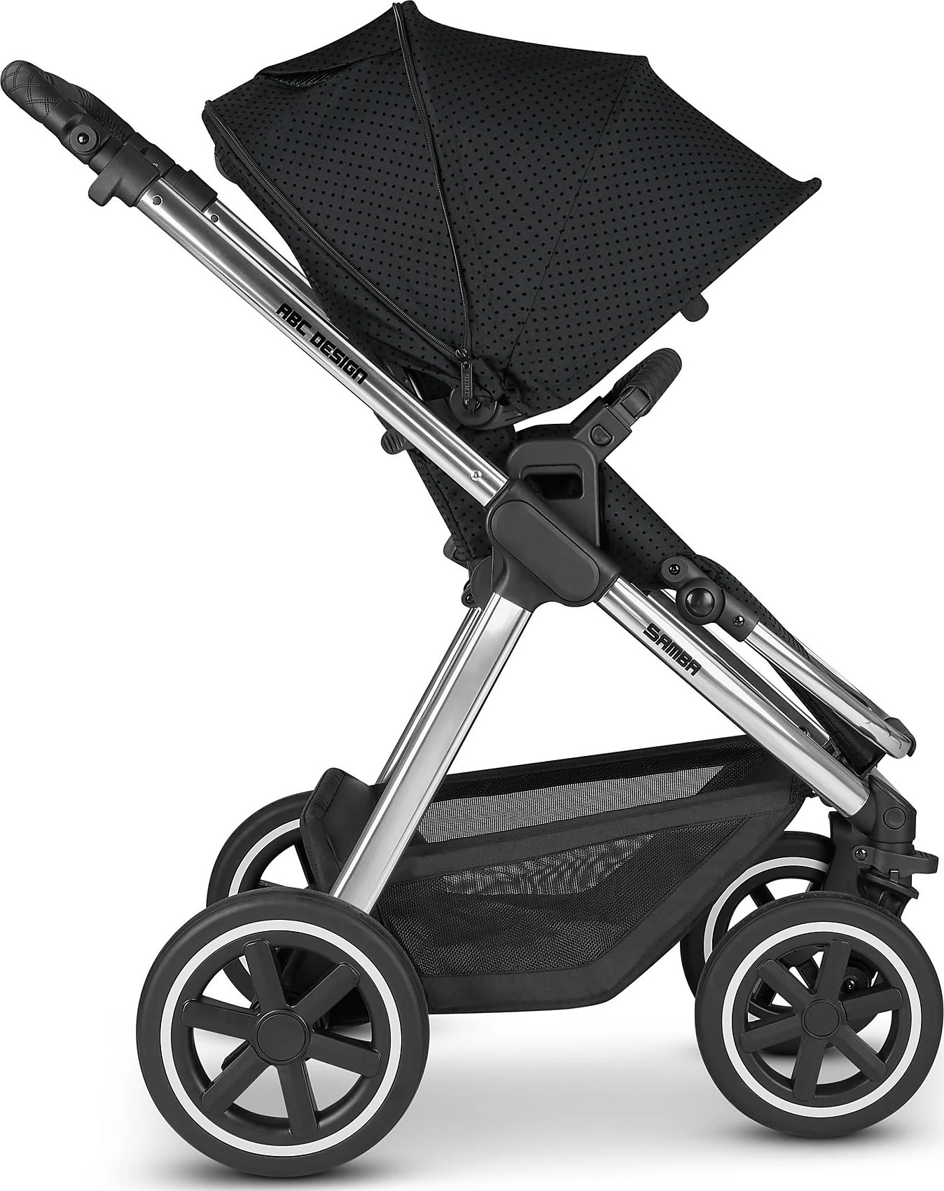 Der ABC Design Kombi-Kinderwagen „Samba“ begleitet Familien besonders flexibel im Alltag. Babys haben es anfangs im Kinderwagenaufsatz auf der ergonomischen, keilförmigen Matratze sehr gemütlich. Später können sie die Welt vom Sportsitz aus erkunden. Auch die ABC Design Autobabyschale kann mit dem passenden Adapter auf dem Gestell befestigt werden.