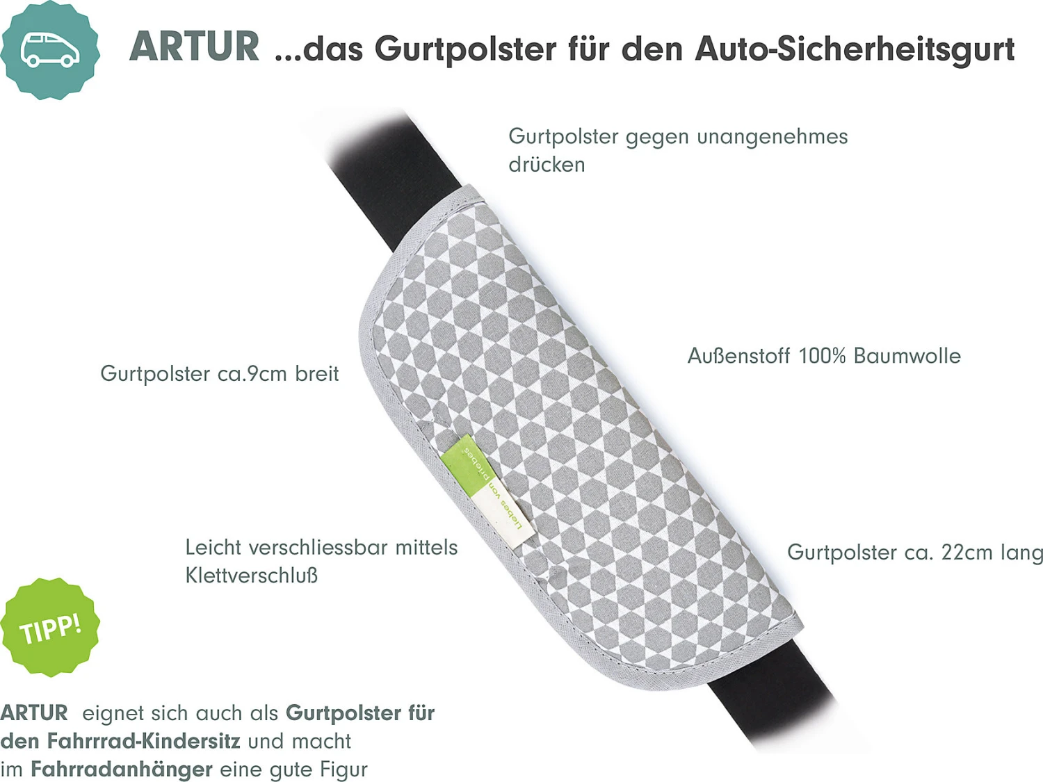 Dieses Gurtpolster von priebes verbessert den Komfort für Ihr Kind, indem es einem Scheuern auf der Haut vorbeugt.