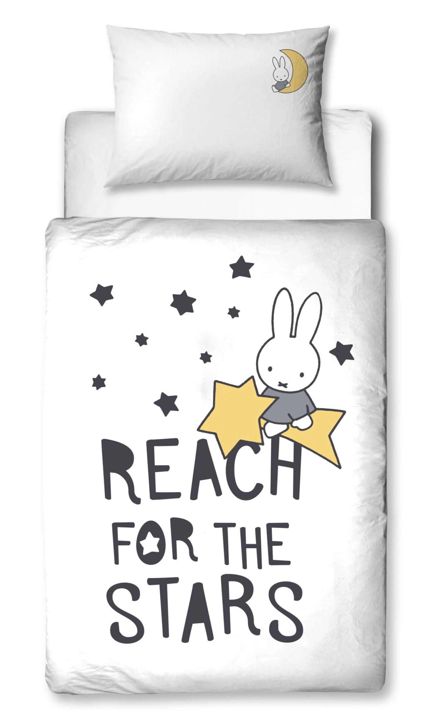 – DESIGN : süße & niedliche „Miffy“ Bettwäsche mit einem tollen Spruch – REACH FOR THE STARS – Kleinkinderbettwäsche zum Kuscheln, Träumen & Wohlfühlen