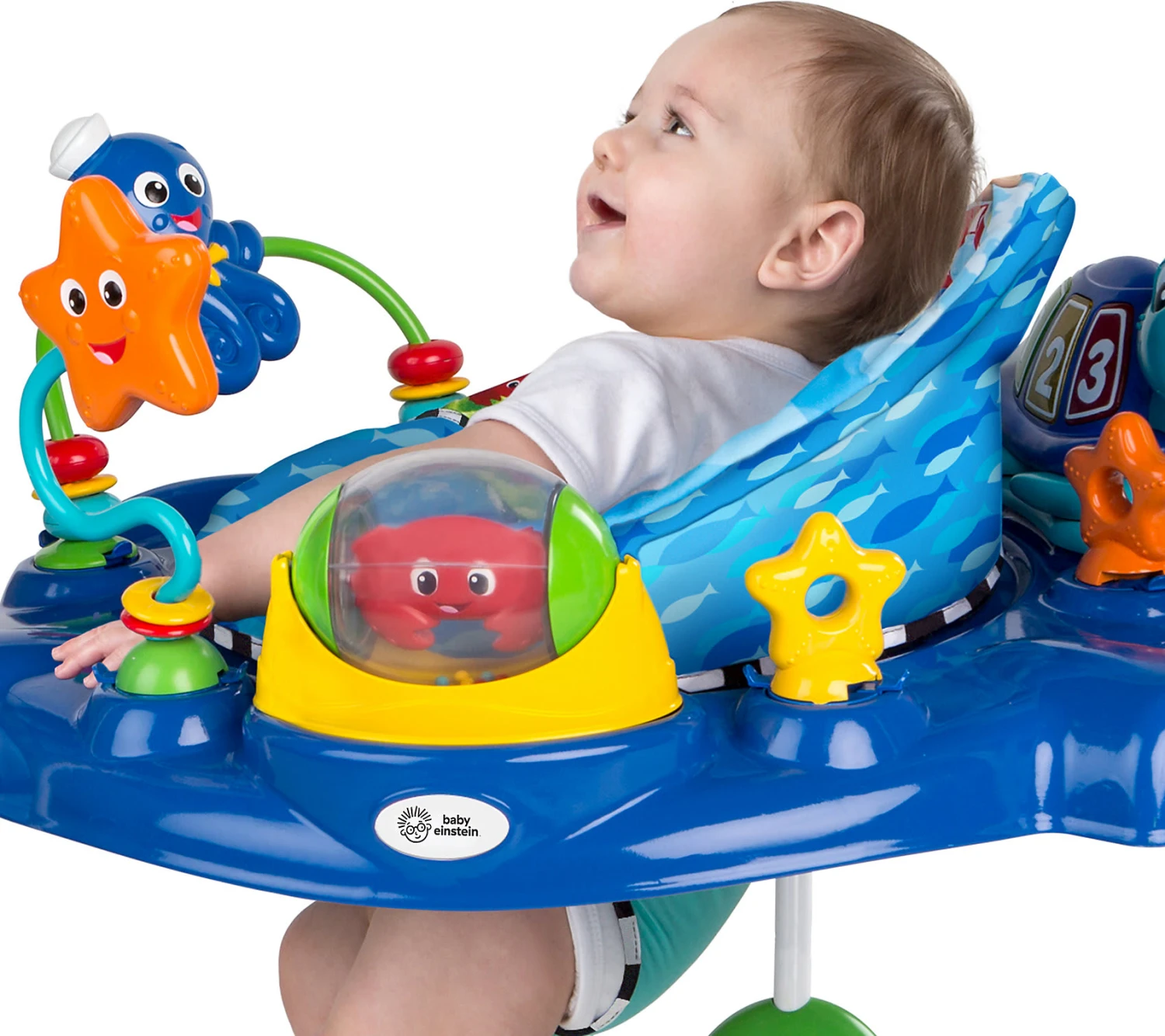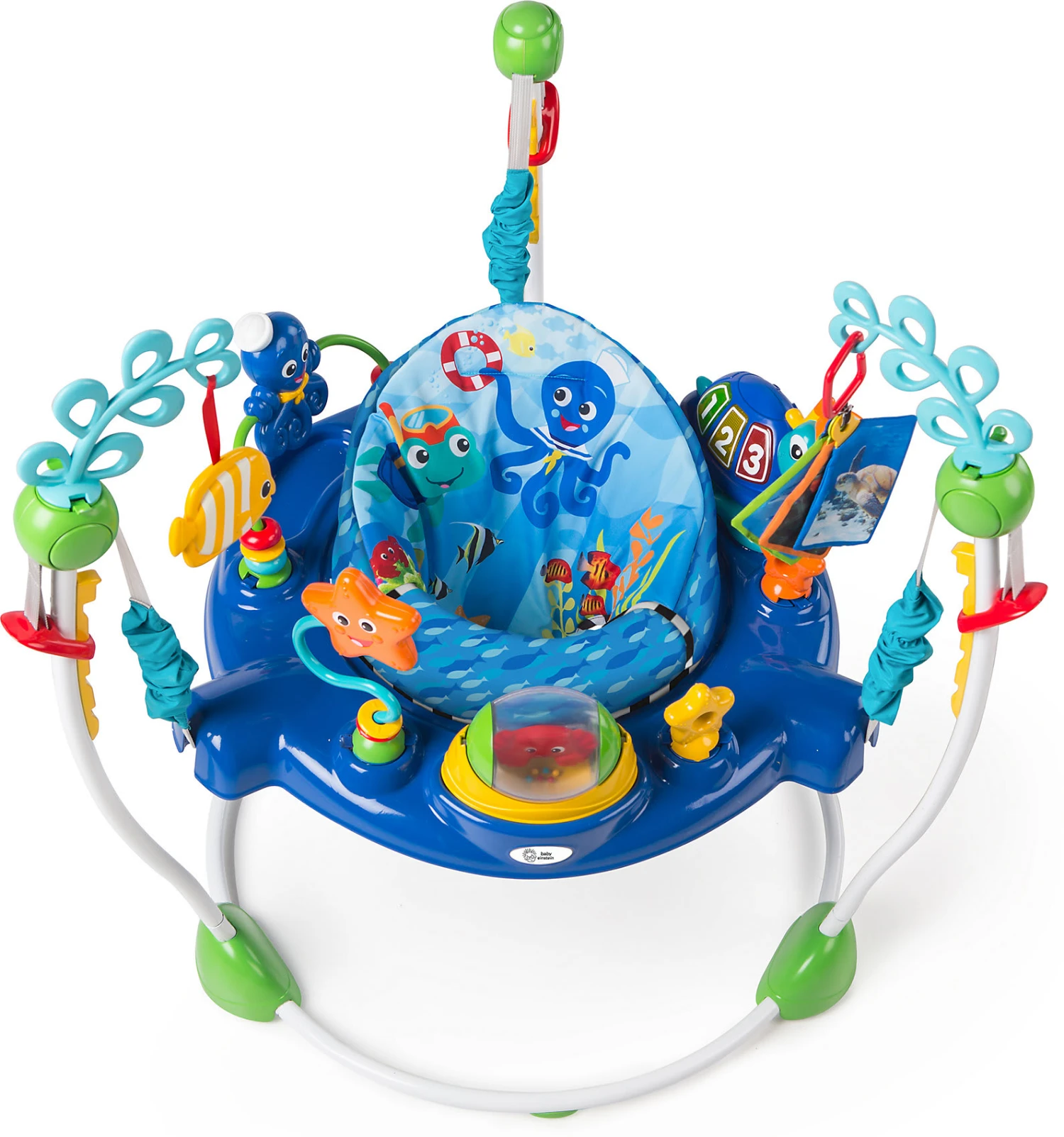 Der coole Spring- und Spielcenter „Neptune’s Ocean Discovery“ aus der „Baby Einstein“-Kollektion von Kids II bietet Kindern spielerischen Lernspaß, Bewegung und jede Menge Unterhaltung. Der gepolsterte Sitz lässt sich um 360° verstellen, sodass alle Spielzeuge ideal erreichbar sind. Verschiedene Meerestierchen, Illustrationskarten und der Activity-Center bereiten kleinen Entdecker*innen große Freude. Der Baby-Hopser bietet zudem lustigen Hüpf- und Tanzspaß!