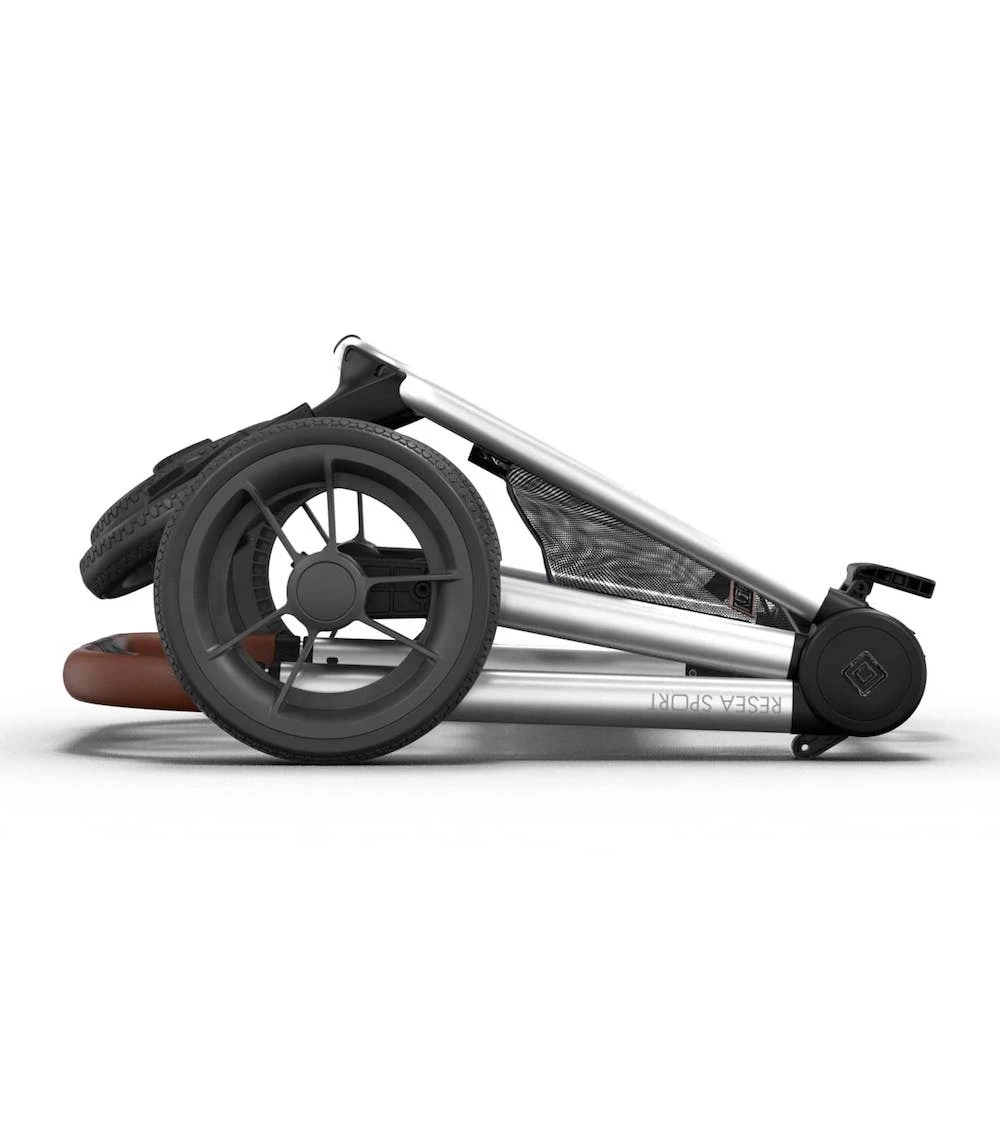Die EVA-Räder sind Kunststoffräder, bei denen der außenliegende Teil aus einer soliden Kunststoffschicht besteht. Platte Reifen sind dadurch Schnee von gestern! Auch das geringe Gewicht des Materials ist immens hilfreich im Eltern-Alltag – ideal auf Reisen und beim Verstauen des RESEA SPORT in Bahn, Bus oder Auto! Die Allrad-Federung sorgt auch bei holprigem Untergrund ruhig fährt. Durch das Kugellager werden Stöße noch besser gedämpft.