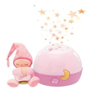Der hübsche Sternenhimmelprojektor wirft ein schönes Sternenmuster an die Decke. Eine niedliche, kindergerechte Figur sitzt neben der Lampe. Sie ist abnehmbar und eine weiche Kuschelfigur für das Baby. Sternenlichter-Projektor, Nachtlicht, abnehmbare Puppe mit Musik und Naturgeräuschen Batterien 3 x AA 1,5 V nicht im Lieferumfang enthalten Der Projektor leuchtet von innen heraus und bildet ein angenehmes Nachtlicht. Die Sternchen an der Decke verwandeln das kinderzimmer in eine Galaxie. Das gedämpfte Licht der Stimmungsleuchte und die integrierte beruhigende Musik sorgen für Babys Entspannung. Außer den klassischen Liedern erklingen auch Naturgeräusche. Das Schlummerland naht schnell, wenn die kleine Puppe dann noch mit dem Baby kuschelt. Melodien: Neben Naturlauten: Rossini: Il Barbiere di Siviglia, Overture, Bach: Sheep May Safely Graze; Cantata No.208
