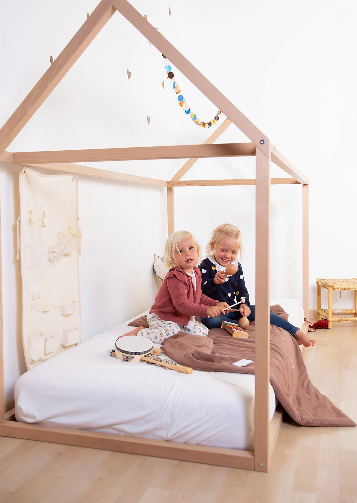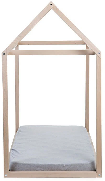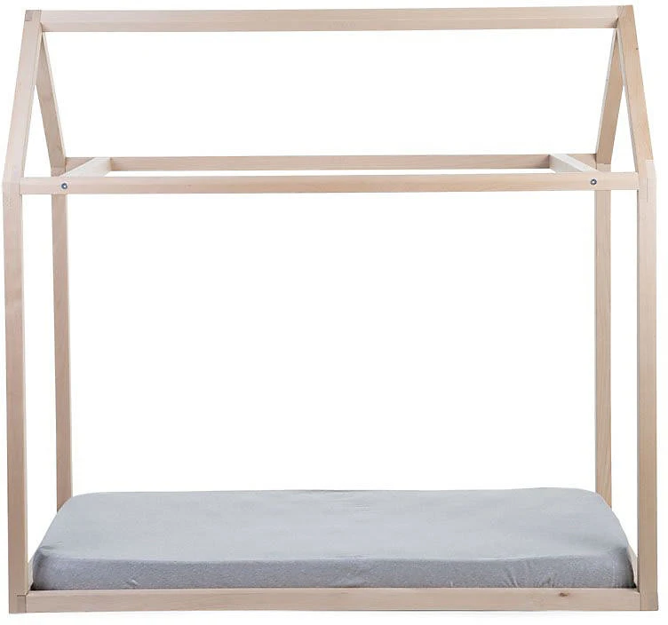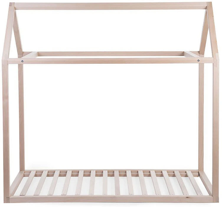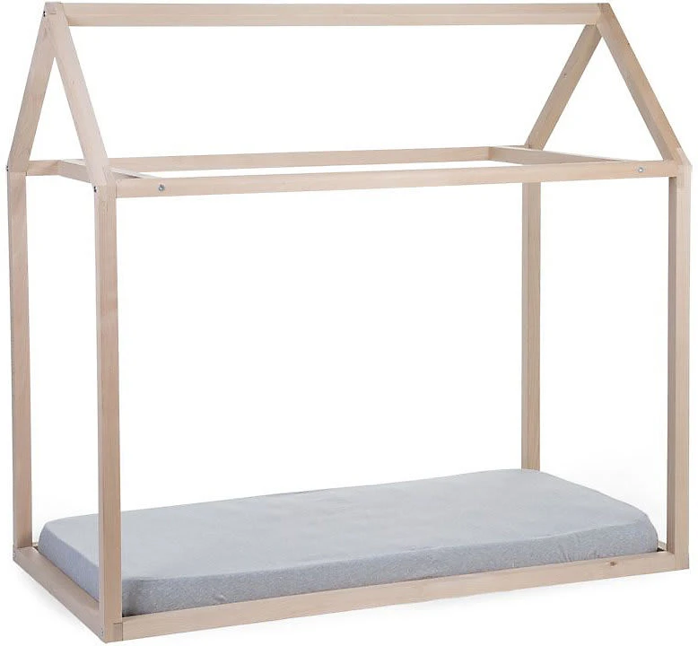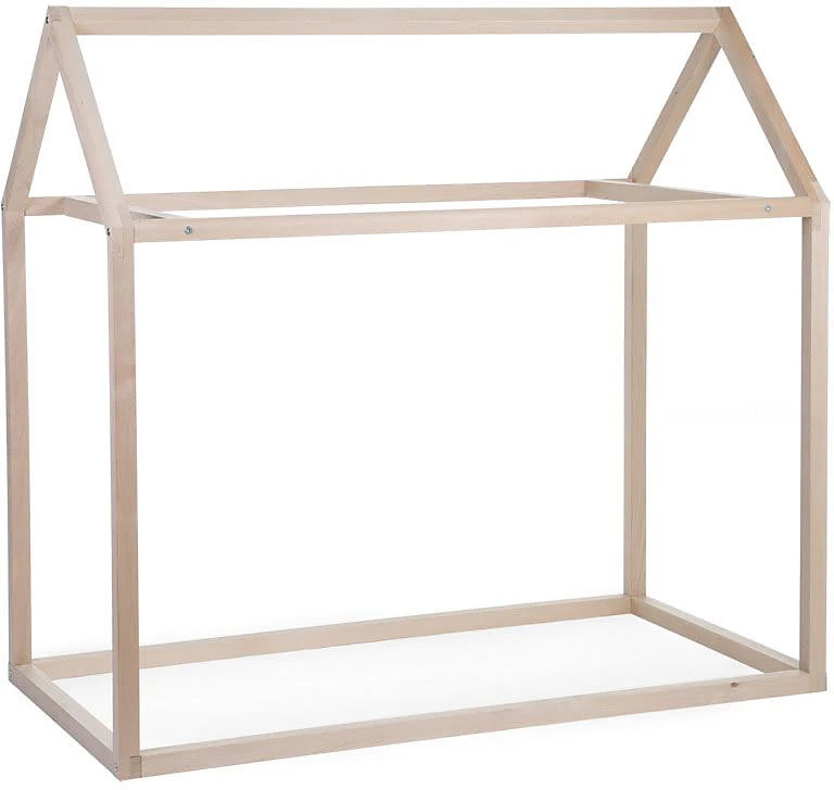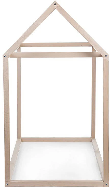Der Rahmen des Kinderbetts von Childhome bietet die Silhouette eines Hauses. Er ist aus Holz gefertigt und kann auch zum Spielen verwendet werden.. Lieferumfang: Rahmen (Lieferung zerlegt) Material: massive, lackierte Buche Verwendung: Kinderbett, Spielhaus Belastbarkeit: bis 80 kg Maße: 148(L) x 78(B) x 124(H) cm Der Rahmen gefällt mit einem coolen, spitz zulaufenden Dach und bildet die Silhouette eines Hauses nach. Er ist aus lackierter Buche hergestellt und sehr stabil gefertigt. Das bodennahe Bett mit Dach darüber lädt so zum Schlummern und Spielen ein. Der Rahmen ist im Nu zusammengebaut und aufgestellt. Seine Maße von 148 Zentimetern Länge, 78 Zentimetern Breite und 124 Zentimetern Höhe beherbergen das Kind und seine Geschwister oder Freunde. Das Haus wird so zum beliebten Rückzugs- und Spielort. Der Dachgiebel kann kreativ und je nach Lust und Laune mit Decken, Vorhängen und Lichterketten dekoriert werden und immer wieder verändert werden. Ein Rahmenüberzug mit Fensteraussparungen und Türöffnung ist zusätzlich erhältlich und erhöht noch die Spielmöglichkeiten. Hinweise Der dazugehörige Lattenrost und der Rahmenüberzug sind nicht im Lieferumfang enthalten. Bitte separat bestellen. Der Rahmen ist mit einer Standard-Matratze (70 x 140 cm) kompatibel (separat erhältlich).