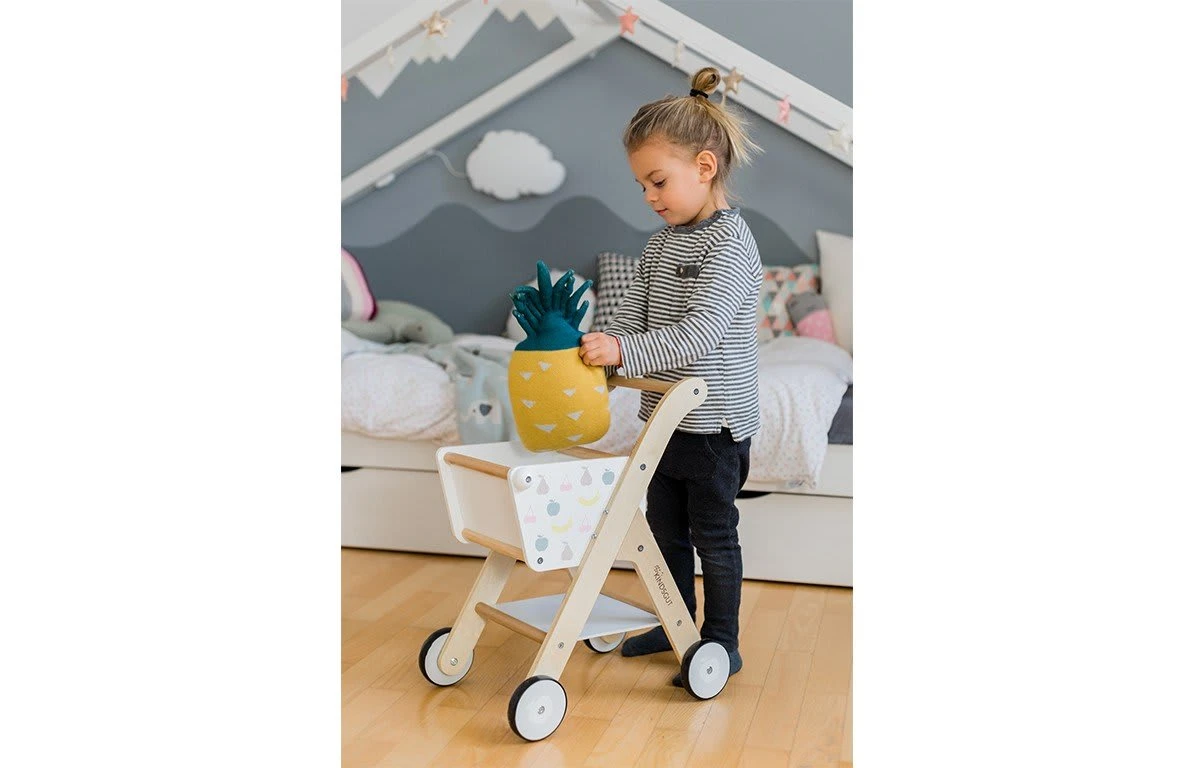 Der Einkaufswagen Obst von Kindsgut ist die perfekte Unterstützung zur Förderung der kognitiven Feinmotorik Deines Kindes und dient vor allem dazu, das Laufen zu verbessern. Mit dem eleganten Design können Sie das Spielzeug stilsicher in Ihr Wohnkonzept integrieren. Der aus Holz gefertigte Kindsgut Einkaufswagen passt ideal zum bewährt reduzierten Look moderner Einrichtungsstile. Durch das Spielen mit dem Einkaufswagen wird Dein Kind dabei unterstützt, das Laufen weiter zu verbessern bzw. immer sicherer dabei zu werden. Die dezente Farbe und die kindliche Form gepaart mit den schönen Obstmotiven machen das Spielzeug zur optimalen Ergänzung und zu einem eindrucksvollen Hingucker in Deinem Zuhause.