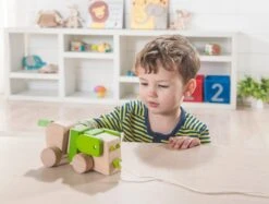 Durch das Ziehen des Hundes, an der dafür vorgesehenen Schnur, beginnen sowohl seine Ohren, als auch sein Körper zu wackeln. Die Kleinen werden den robusten Spielkameraden sofort ins Herz schließen. Durch das Ziehen des Hundes wird die Balance des Kindes verbessert. Beim Spielen mit dem Holzhündchen werden zudem motorische und visuelle Fähigkeiten gestärkt.