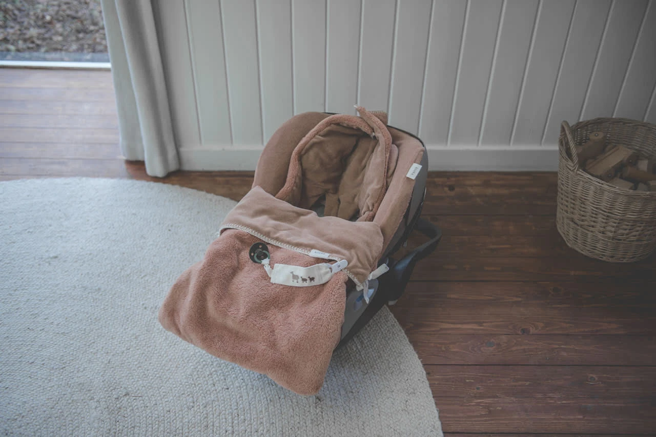 – Warmer Teddy Fußsack mit Kapuze für den Autositz 0+