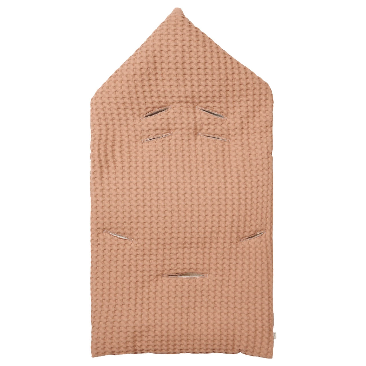 – Der robuste Baumwollstoff mit Waffel-Relief ist eine moderne Version der Retro-Waffeldecken aus den Siebzigern. Aufgrund des weichen Teddyfutters empfehlen wir die Verwendung in den kälteren Monaten.