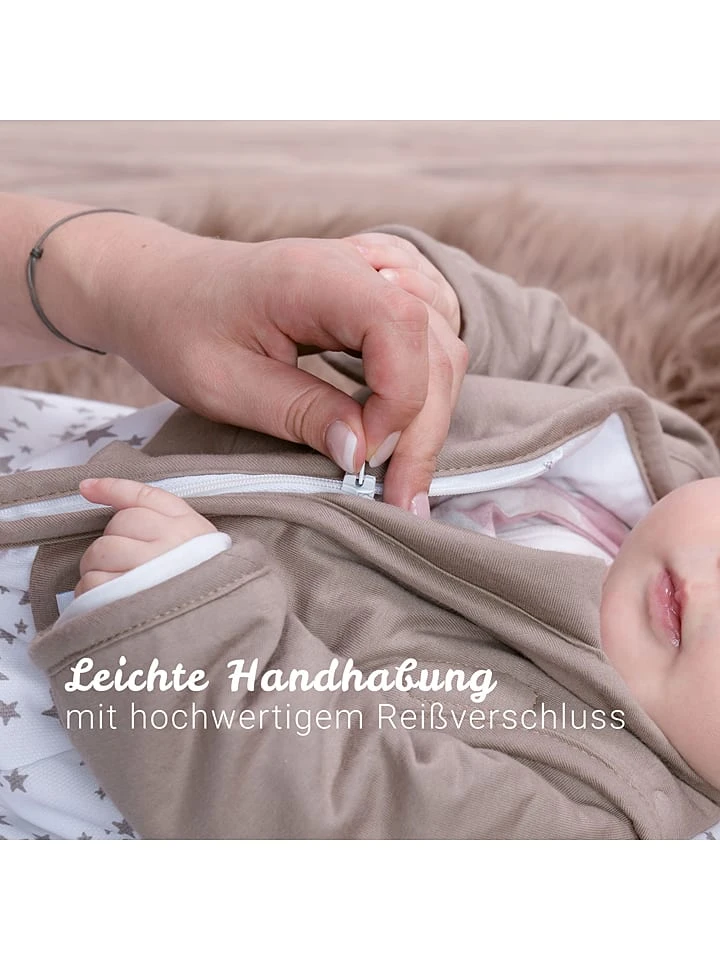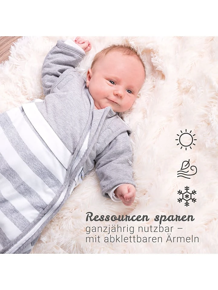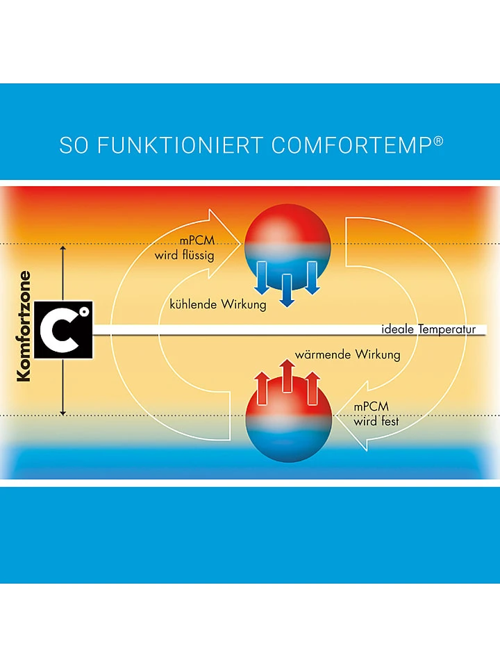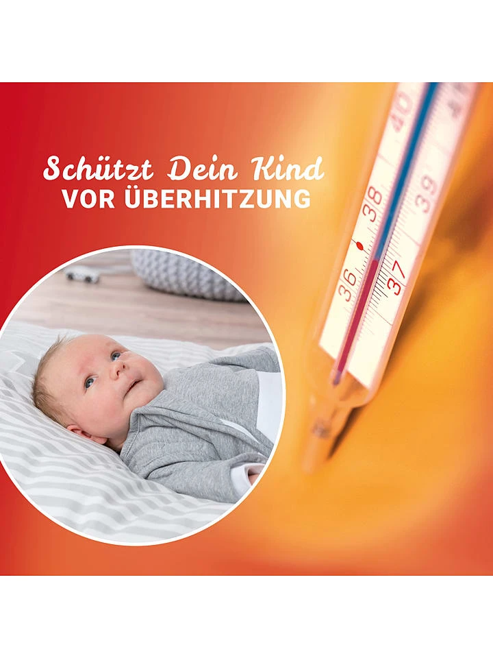 Wenn die Körpertemperatur eures Kindes über dem Idealwert liegt, werden die im Schlafsack befindlichen Mikrokapseln flüssig und erzeugen einen Kühleffekt. Sinkt die Temperatur wieder, gehen die Mikrokapseln von der flüssigen in die feste Phase über, setzen dabei Wärmeenergie frei und halten so den Körper auch bei niedrigen Temperaturen angenehm warm.