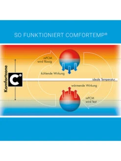 In der ersten Schlafphase, wenn die Körpertemperatur des Kindes häufiger über dem Idealwert liegt, nehmen die winzigen Mikrokapseln im Inneren Körperwärme auf und speichern sie. Wenn dann später die Körpertemperatur sinkt, wird diese Wärme wieder abgegeben. So bleibt das Baby die ganze Nacht in seiner individuellen Komfortzone.