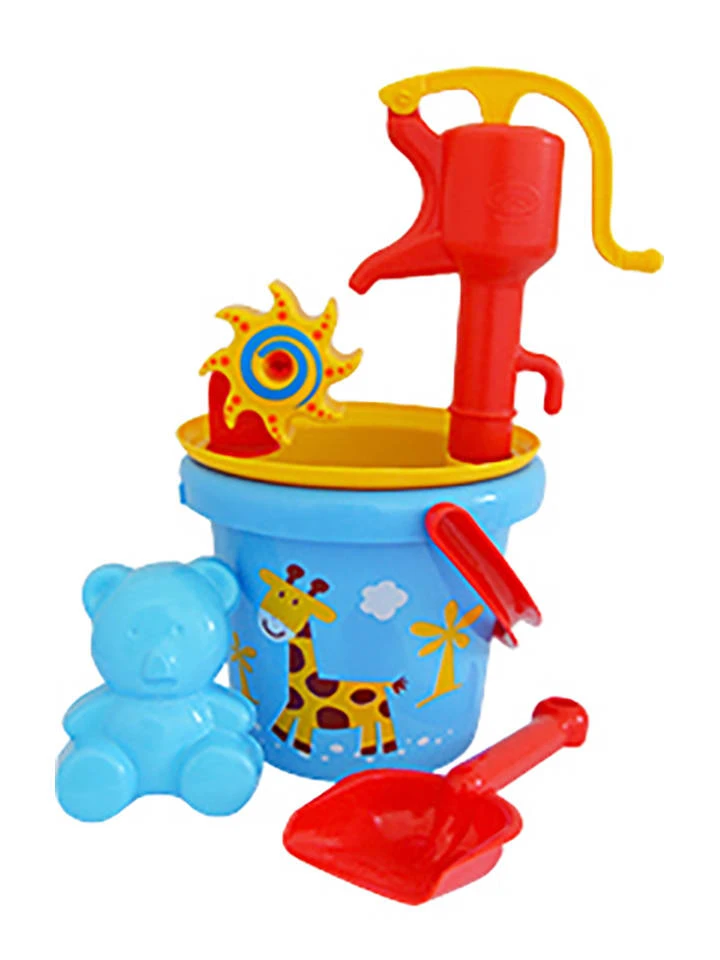 – Inhalt: Eimer, Sieb, Sandform, Schaufel und Pumpe
