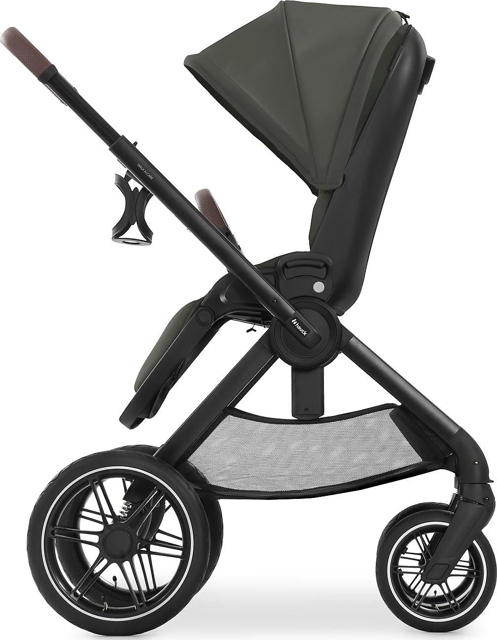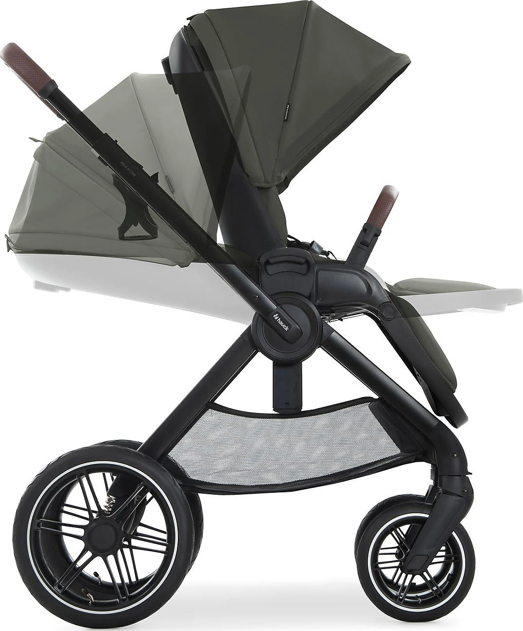 Ein hochwertiger, flexibler Begleiter für Eltern ist der Walk N Care Kombi-Kinderwagen von HAUCK. Im Kinderwagenaufsatz können Babys es sich Babys so richtig bequem machen. Der Aufsatz bietet eine weiche Matratze sowie zahlreiche Polsterungen, die bei dem Kind für maximalen Komfort sorgen. Die beiden großen Panoramafenster sorgen dabei für optimale Luftzirkulation und dank der Größe ist stets für genug Bewegungsraum gesorgt. Das Drei-Zonen-Verdeck mit extra Sonnenblende bietet an sonnigen Tagen den optimalen Schutz. Für windiges Wetter ist zudem ein praktischer Windschutz mit dabei. Der Kinderwagenaufsatz wird schnell und mühelos mit Druckknöpfen am Wagen befestigt und lässt sich ebenso leicht wieder abnehmen. Soll der Aufsatz mitgenommen oder verstaut werden, kann man ihn platzsparend zusammenfalten.