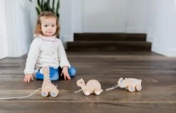 Die Ziehtiere von Kindsgut sind ein absolutes Highlight. Sie überzeugen einerseits durch ihre Funktionalität und daneben durch ihr zauberhaftes Design. Durch das Spielen mit dem Ziehtier wird Dein Kind dabei unterstützt, seine Geschicklichkeit zu verbessern. Wunderbar ist, dass Dein Kind je nach Alter bzw. Fähigkeit das Tierchen entweder per Schnur ziehen kann oder auch „nur“ per Hand schiebt. Das Ziehtier ist die perfekte Unterstützung zur Förderung der Motorik Deines Kindes. Das handliche Format macht das Spielzeug außerdem zu einem optimalen Begleiter für unterwegs. Auch bei diesem Produkt wurde wieder viel Wert auf das Design gelegt. Die dezente Farbe des Holzes lässt das Spielzeug sehr edel wirken. Mit dem eleganten Design kann das Spielzeug stilsicher in Dein Wohnkonzept integriert werden. Das Ziehtier passt ideal zum bewährt reduzierten Look moderner Einrichtungsstile.
