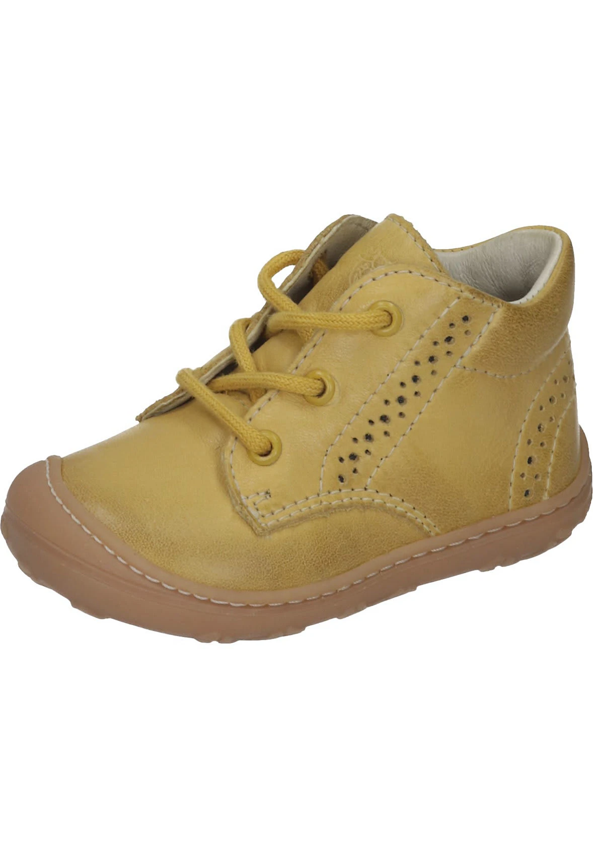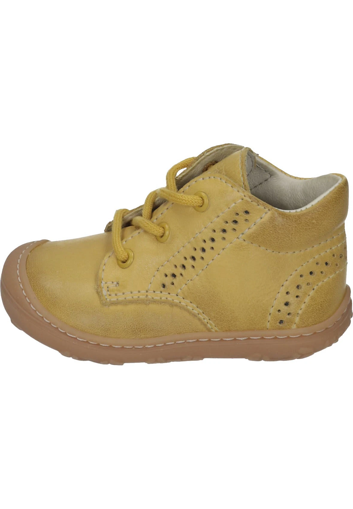 Bei diesem Produkt handelt es sich um einen Schuh aus der Kategorie Schnürschuhe für Kinder. Als Obermaterial wurde Leder verwendet und im inneren Bereich des Schuhs wurde Lederfutter und herausnehmbare Lederdecksohle verarbeitet. Die Schuhweite dieses Artikels ist Weite M und somit mittel nach WMS. Als Verschlussart wurde Schnürung gewählt und die Naturkautschuk rundet das Produkt ab.