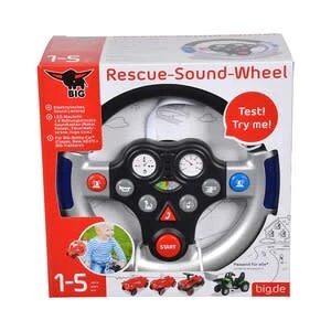 Jetzt verwandeln sich Kinderzimmer oder Spielplätze im Handumdrehen in wahre Heldenschauplätze, denn mit dem BIG-Rescue-Sound-Wheel wird jeder BIG-Bobby-Car Besitzer im Nu zum mutigen Retter in der Not. Egal ob als Polizist, Feuerwehrmann oder -frau, mit dem BIG-Rescue-Sound-Wheel sind die kleinen Fahrer und Fahrerinnen ab 12 Monaten für alle kniffligen Rettungseinsätze perfekt ausgestattet. Sound-Lenkrad für kleine Helden ab 1 Jahr Artikelgröße montiert: 19,3(L) x 19,3(B) x 10,5(H) cm mit einer großen Pallette an verschiedenen Sounds: Feuerwehrsirene, Hundegebell, Rettungsnotruf, Anlasser, Polizeifunk, Polizeisirene und Polizeihubschrauber mit Blaulicht-Funktion Batterien 3x 1,5 V AAA, LR3 sind enthalten Hinter acht verschiedenen Tasten verbergen sich originalgetreue Geräusche. Je nach Bedarf können die kleinen Helfer zwischen Polizei- oder Feuerwehrsirene wählen zu der sich das integrierte Blaulicht einschaltet. Das BIG-Rescue-Sound-Wheel ist spritzwassergeschützt und passt an alle BIG-Bobby-Car (New und Classic) ab Baujahr 2010 sowie an alle BIG-Traktoren.