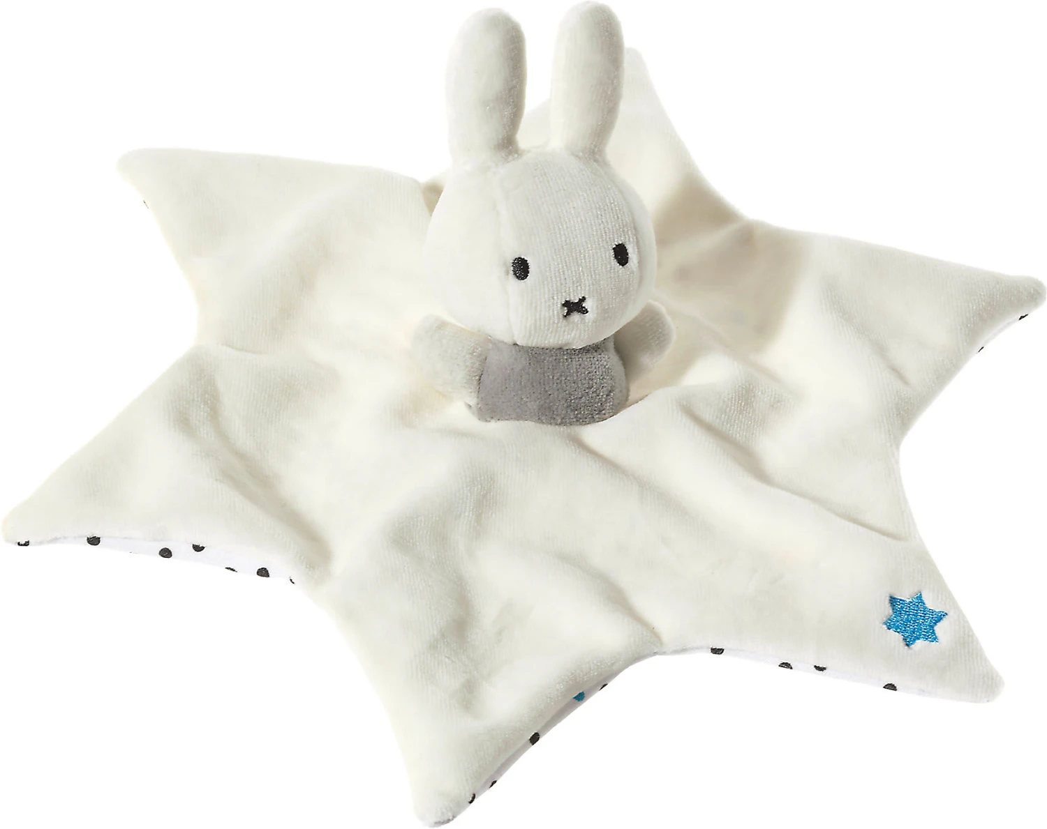 Das niedliche Kaninchen Miffy begleitet Kinder nun schon seit vielen Jahren und beeindruckt mit ihrem klassisch-schlichtem Äußeren. Schnuffeltücher sind für Babys eine wahre Freude und spielen eine wichtige Rolle bei der Vermittlung von Geborgenheit. Nicht nur können Eltern mit dem samtweichen Tuch zärtlich über Babys Gesicht streichen, das Kleine wird auch selbst zum Greifen und Nuckeln angeregt. Eine Besonderheit ist Miffys Gesicht, das liebevoll bestickt wurde. Die Rückseite des Schnuffeltuchs ist mit einem tollen Punkte-Print versehen.