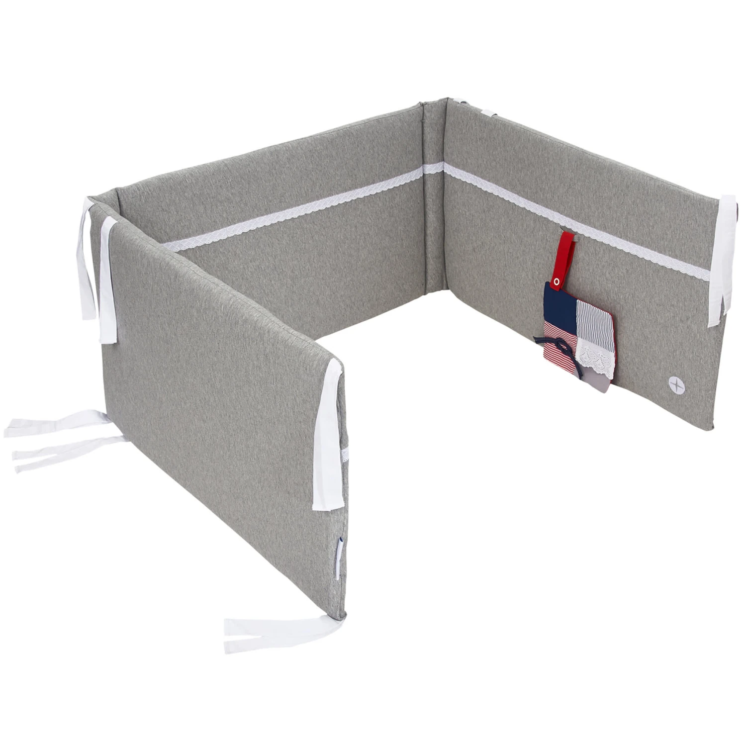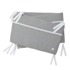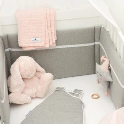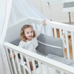 Es ist in sich stabil und sackt nicht zusammen. Die Bänder sind extra Reißfest, auch bei aktiven Kindern. Das Nestchen ist komplett waschbar und nach OEKO TEX Standard 100 gefertigt. Neben dem tollen Design, welches jedes Babybett zum gemütlichen Schlafplatz und Hingucker macht, haben wir großen Wert darauf gelegt, dass es perfekt ins Babybettchen passt- und zwar auch, wenn das Bett eine geschlossene Rückwand hat (an welche man keine Bänder festknoten kann!) und wenn es nach 3-4 Monaten auf die unterste Stufe gestellt wurde. Dann nämlich reichen die Bänder, die nach EU Vorschrift nur 20 cm lang sein dürfen, nicht mehr bis zum oberen Rand und das Nestchen wird unsicher und wackelt. Übrigens der Hauptgrund, weshalb Hebammen pauschal lieber abraten, obwohl Nestchen nachweislich Schutz und Geborgenheit geben. Sie beruhigen das Kind und schützen das Köpfchen bei nächtlichen Bewegungen.