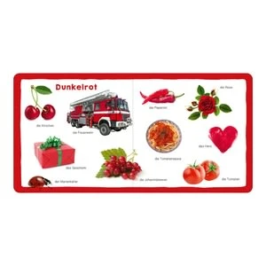 Mit „Mein erstes dickes Farbenbuch“ von arsEdition macht das Farbenlernen Spaß! ab 12 Monaten geeignet Hardcover 40 Seiten deutschsprachig Die Erdbeere ist rot, das Zebra schwarz-weiß und die Gurke ist grün. Doch welche Farben haben das Polizeiauto und die Müllabfuhr? In diesem ersten Wörterbuch kannst du es herausfinden. Hochwertige Fotografien und verschiedene Themenseiten laden zum Kennenlernen der Farben ein. Ein Muss für kleine Weltentdecker! Das erste Wörterbuch zum Thema Farben bietet stundenlangen Entdeckerspaß für die Kleinsten. Auf insgesamt 19 Doppelseiten werden alle Farben anhand bekannter Tiere, Fahrzeuge und Gegenstände aus dem Kinderalltag vorgestellt und benannt. Die unterschiedlichen Themenseiten stellen die vielfältige und große Welt der Farben dar. Aktuelle und realistische Fotos regen zum Zeigen, Erkennen und Benennen an. So wird das Farbenlernen zum Kinderspiel! Sprachförderung leicht gemacht: Realistische Fotos und bunte Themenseiten laden zum Entdecken, Wiedererkennen und Benennen ein. Farbenlehre auf einen Blick: Die ganze Welt der Farben in einem Buch. Perfekt für kleine Kinderhände: Dicke Pappseiten und handliches Format.
