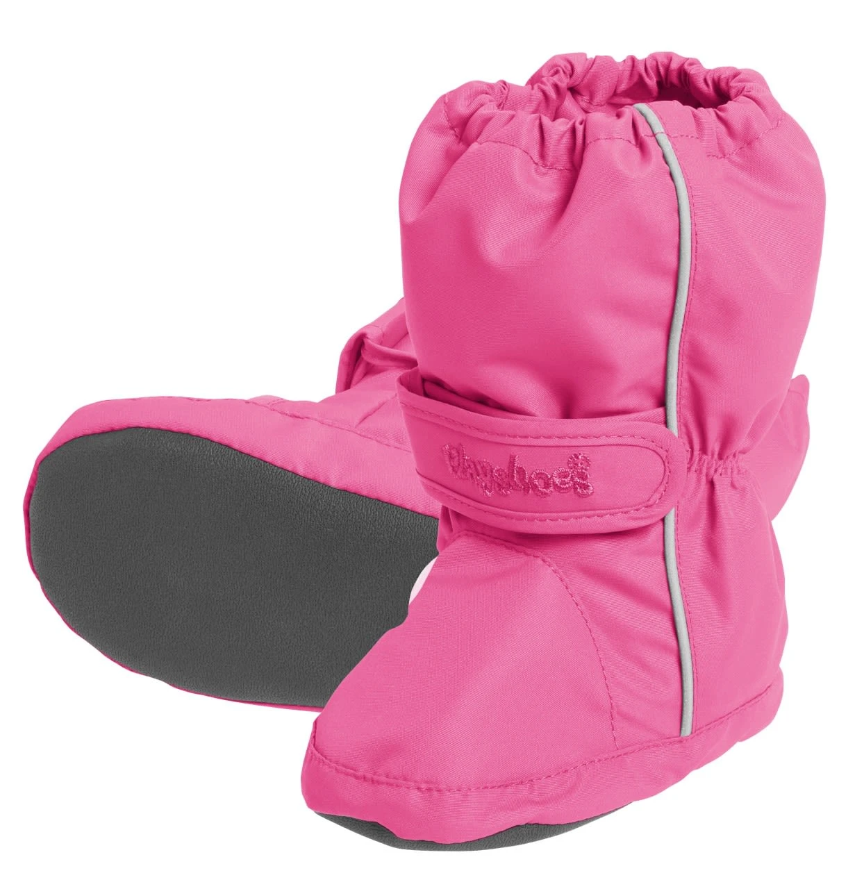 Praktische Thermo-Füßlinge für kleine Krabbelkinder und Babys, die noch nicht laufen können. Die warmen Thermo-Schuhe sind optimal zum Spielen im Sand oder bei Regen und Schnee. Dank eines elastischen Gummizugs im Saum und einem Klettverschluss bieten die leichten Thermo Booties optimalen Halt und verrutschen nicht. Reflektorenstreifen an der Seite sorgen für mehr Sicherheit im Straßenverkehr und der dunklen Jahreszeit. Die Winterschuhe sind nicht nur wind- und wasserabweisend sondern auch strapazierfähig und knautschbar – Obermaterial: Textil – Futter & Decksohle: Textil – Laufsohle: Sonstiges Material