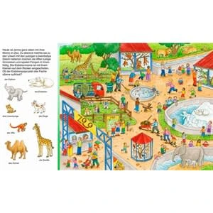 Elf Wimmelbilder aus der Alltagswelt des Kleinkindes laden zum genauen Hinsehen ein. Sachen suche – Meine Wimmelbilder von Ravensburger ab 2 Jahren aus Pappe deutschsprachig Kleine Suchbilder fordern zum Wiederfinden auf: Zuhause, im Kindergarten, im Park, beim Einkaufen auf dem Markt und im Kaufhaus, im Schwimmbad, Zoo uvm.