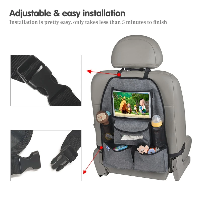 Altabebe Rückenlehnentasche ist stilvoll, funktional und einfach zu installieren. Alle Eltern wissen, wie die Autofahrt für Ihr Kind langweilig sein kann und dadurch stressig für Sie. Altabebe Rückenlehnentasche mit iPad/Tablet Fach löst nicht nur das Problem der Langweile sondern auch bietet Ihnen praktische Lösung für Aufbewahrung von Kindersachen im Auto. Altabebe Rücksitz-Organizer ist das perfekte Gadget für eine längere Reise, Familienurlaub oder längere Fahrten im Auto. Unsere Tasche besitzt: 2 Netztaschen mit dem Kordelzug, wo Sie Trinkflaschen aufbewahren können; das iPadfach (Geeignet für Tablets und iPads bis 9,5“), das den Bildschirm Ihres Tablets schützt und Ihnen den Zugriff auf den Touchscreen ermöglicht; zwei tiefe Tasche und eine zentrale Aufklapptasche zum Speichern von Windeln, Bücher, Spielzeug, Batterien, Gewebe Box, Notizblöcke, Zeitschriften und vieles mehr! Altabebe Rückenlehnentasche ist universal – passt zu meisten Rücksitzen. Lässt sich einfach installieren dank Schnallen und Trägern. Die Tasche ist aus sehr strapazierfähigem Material gemacht und leicht zu reinigen. Diese Rückenlehnentasche schützt die Rückseite des vorderen Fahrzeugsitzes vor schlammigen Schuhen und Fußspuren.
