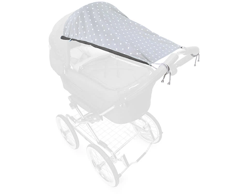 …das 2-seitige Sonnensegel mit Seitenschutz und UV-Schutz 50+. Da Sonneneinstrahlung selten senkrecht, sondern eher seitlich auf den Kinderwagen fällt, müssen handelsübliche Sonnensegel bei Fahrtrichtungswechsel oder sich änderndem Sonnenstand laufend zurecht geschoben werden. Nicht so bei JOHANNA! Unser Sonnensegel besitzt Seitenflügel, die bei Bedarf hoch- und runtergerollt werden können. So ist das Kind zu jeder Zeit optimal geschützt. Das Sonnensegel ist oben ca. 58 cm breit und wird zum Kinderwagengriff hin schmäler (ca. 35 cm). Die Seitenflügel sind ca. 22 cm lang.