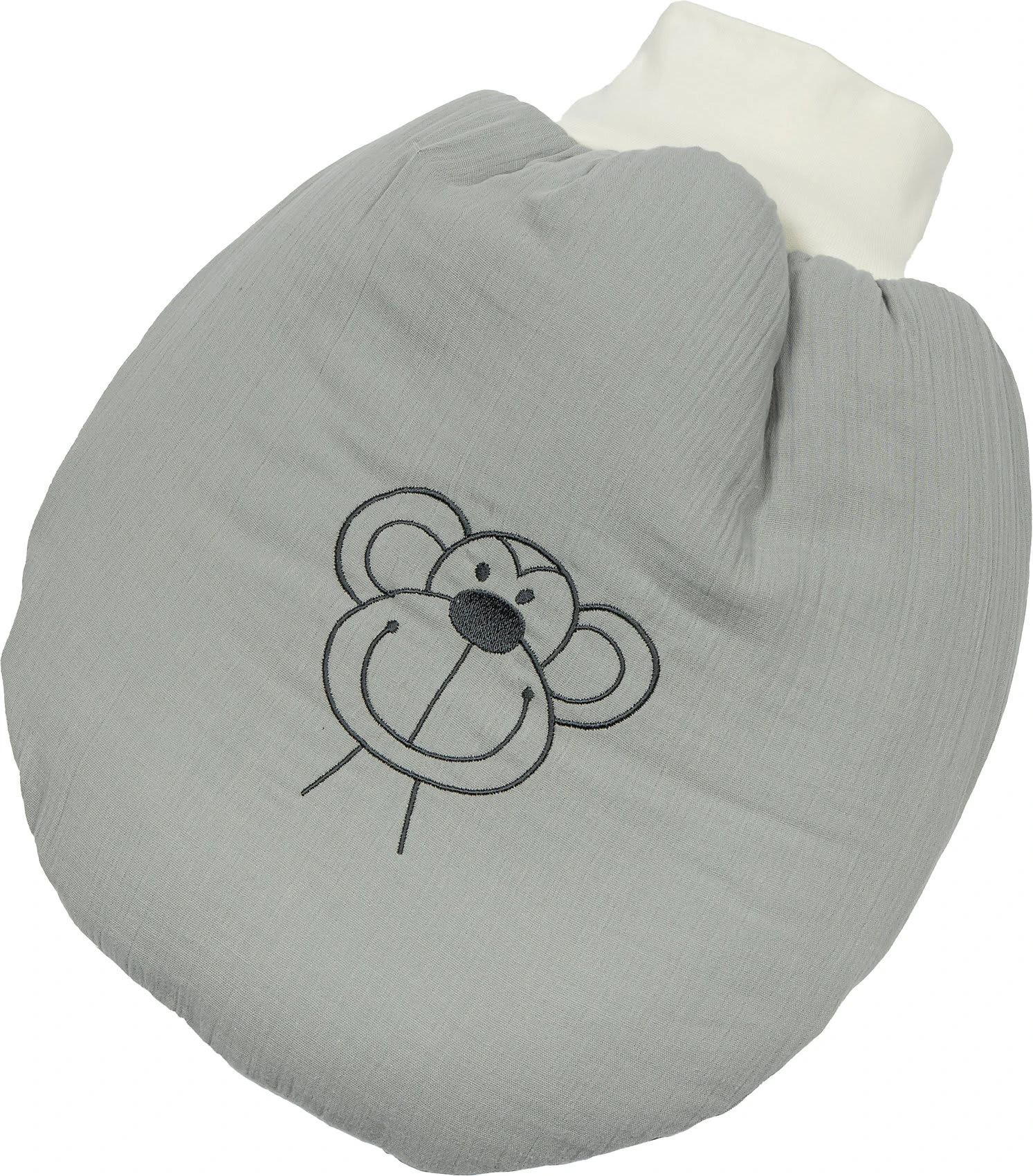 Dieser Strampelsack der Marke Be Be’s Collection sichert dank der Birnenform eine bestmögliche Bewegungsfreiheit und lässt sich schnell anziehen.