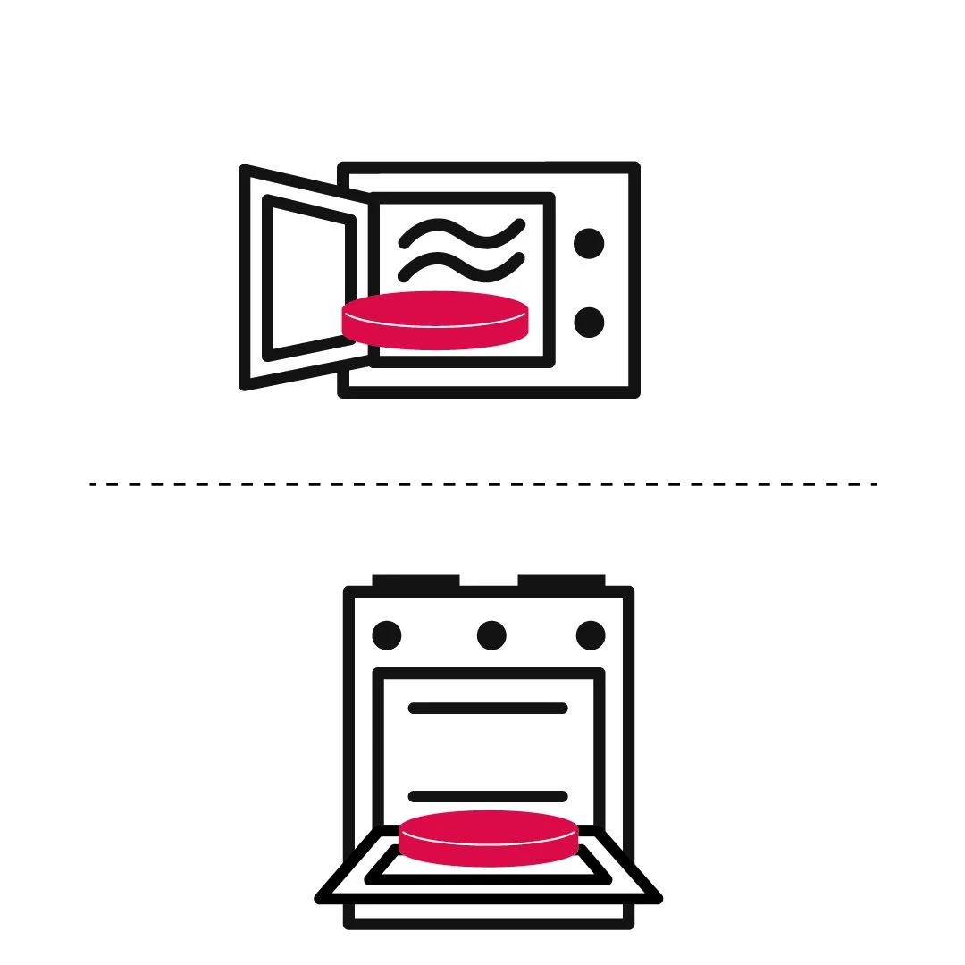 • Schnell in Mikrowelle oder Ofen aufwärmbar