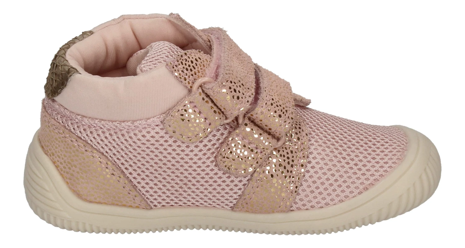Reduziere den ökologischen Fußabdruck Deines Babys auf coole Weise! Das umweltfreundlichere Herstellung und coole Mode sich nicht ausschließen müssen zeigt uns Woden mit diesen Babyschuhen. Die skandinavische Marke WODEN legt ihren Focus auf skandinavisches Design, natürliche Qualitätsmaterialien und ein gutes Preis-Leistungsverhältnis. Die Lauflernschuhe in rosa kommen in einem Materialmix aus softem Kalbsleder und Polyester daher. Der Polyester besteht als Teil des FIFTY-Konzepts von Woden aus mindestens 50 % recyceltem Kunststoff. Die herausnehmbare Einlegsohle aus natürlich stoßdämpfendem, atmungsaktivem Kork sorgt für ein super Klima im Schuh. Für einfaches An- und Ausziehen sorgen die Klettverschlüsse.